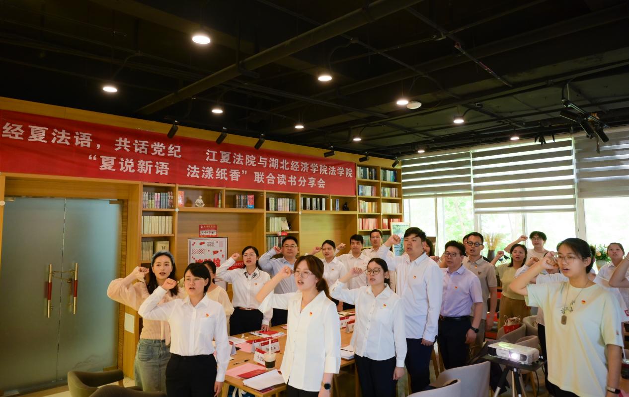 本网杨专领誓重温入党誓词并致辞,他对江夏区法院各位领导和干警们的到来表示热烈的欢迎和诚挚的感谢。他强调,加强党纪学习教育,是加强党的纪律建设,推动全面从严治党向纵深发展的重要举措。他希望通过读书交流分享,进一步提高政治站位,深化思想认识;进一步明确学习目标,提升学习动力;进一步强化学习效能,服务事业发展。他对江夏区法院长期以来对学院发展的支持表示感谢,希望进一步加强校地合作,共同推动法学教育与司法实践深度融合,为培养更多优秀的法律人才,建设更加公正、文明的法治社会贡献力量。