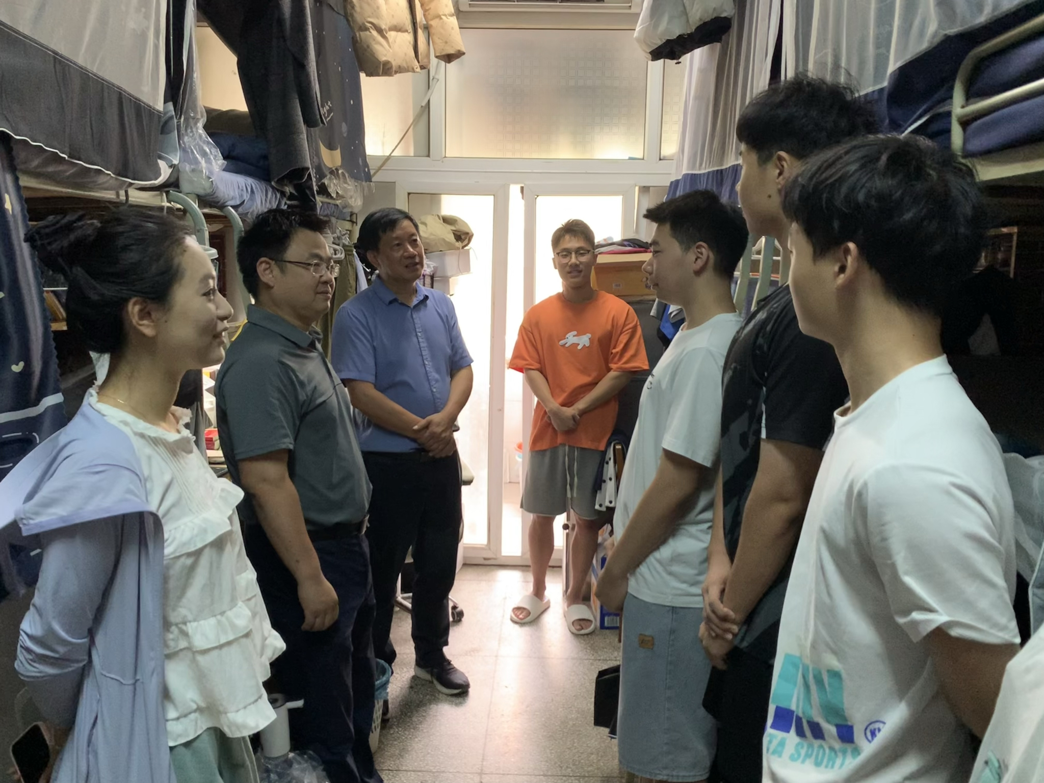 在走访过程中,许传华认真查看了学生住宿情况,了解学生们的饮食起居,希望大家养成健康的作息习惯,鼓励同学们在学习之余加强体育锻炼。许传华特别询问了学生的学习规划,鼓励大家端正学习态度,不畏艰难险阻,力争在学术研究、学科竞赛上创造出更多优异成绩。