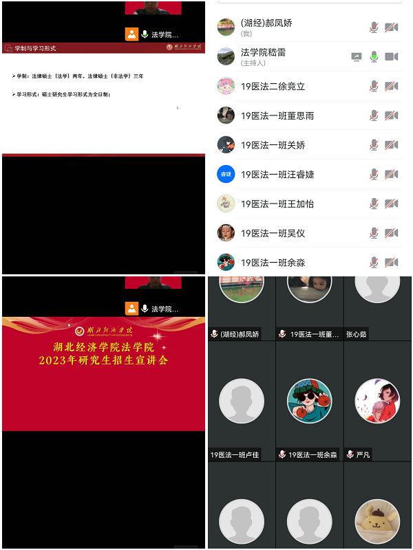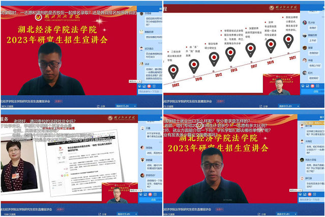 针对不同院校开云成功举办4场线上宣讲活动,首场大型宣讲活动在7月11日,由开云嵇雷副院长在中国教育在线召开的全网直播宣讲活动,在线人数近2000人。后期,开云嵇雷副院长、黄新华博士、张晓京教授分别于928日、1010日、1012日通过腾讯会议直播的方式为湖北中医药大学、武昌理工学院文开云kaiyun官方网站、湖北工业大学工程技术学院(独立学院)19级和20级学生做了关于开云2023年法律硕士研究生招生政策宣传及答疑交流。每场直播持续1个多小时左右,取得了良好的宣讲效果。