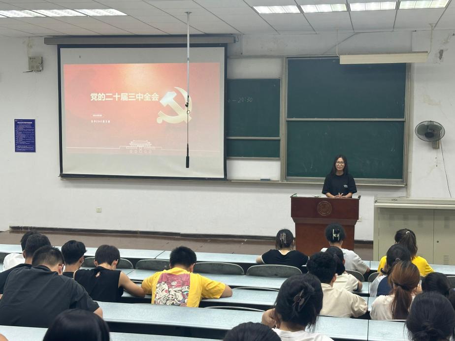各团支部结合专业特色,围绕“贯彻学习党的二十届三中全会精神”“学习奥运精神,建设体育强国”“暑期归来话实践”“全民国防教育”等主题积极开展交流讨论,通过主题讲解、观看宣传片等形式开展。