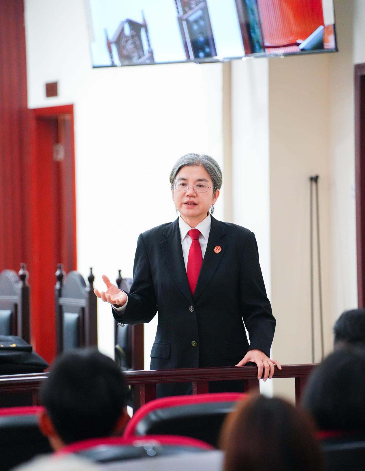 座谈结束后,院长邱秋与党委书记杨专向出席本次庭审的各方人员表示真挚感谢,并鼓励同学们能在日后的学习中精进专业知识,为未来从事法律工作,维护社会公平正义做好准备。