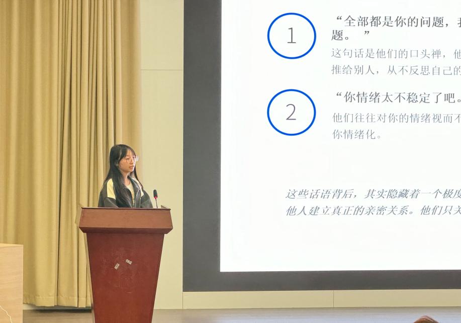 心协指导老师唐亚辉在总结发言中,对参赛队伍的主题选择、内容丰富性及准备充分性给予了高度评价,对大家的精彩表现表示赞赏,并希望同学们能够以此为契机,不断提升自己的演讲能力与心理素质。最后,她衷心感谢各方对大赛的鼎力支持与协助,并宣布本次心理健康知识大赛大赛初赛圆满落幕。