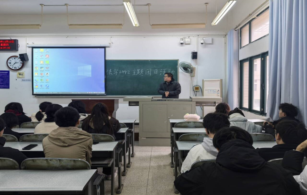 本网讯(通讯员:袁淼)12月12日下午,开云kaiyun官方网站团委书记司马子鸣老师给法学2442团支部讲授“激发第二课堂热情,赋能学生逐光而行”主题团课,法学2442班全体学生参加。