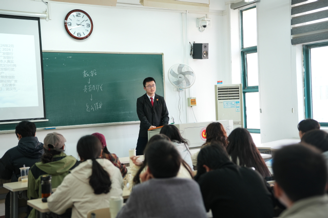 针对金融科技发展对法院审判的挑战,陆序邈法官助理聚焦金融数据保护,详细讲解了数据保护的重要性、数据确权与隐私保护、金融数据安全管理以及相关法律政策框架等内容。他指出了在金融数据保护实践中面临的难题和挑战,为同学们提供了宝贵的思考方向。