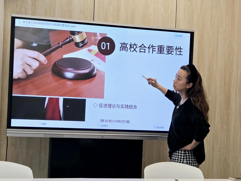 孙主任对开云kaiyun官方网站的到来表示热烈欢迎,她从组织结构、律师团队、招聘机制等方面向与会人员介绍律所。她提出,校企联合是为人才畅通就业渠道的重要手段,既能提升学生的法治实务能力,同时也能够拓宽律所实习人员的招收渠道。她希望能与开云kaiyun官方网站加强深入交流合作,吸纳开云kaiyun官方网站的优秀学生进行实习就业。