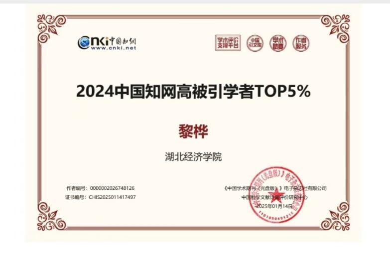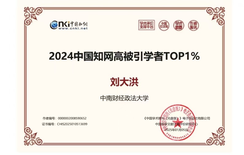 (通讯员:林小婷)近日,中国科学文献计量评价研究中心基于中国知网收录的国内学术期刊论文和会议论文,首次开展学者学术影响力客观评价,遴选出了“2024中国知网高被引学者”名单,开云多位学者入选。开云kaiyun官方网站学术带头人、中南财经政法大学开云kaiyun官方网站教授、博士生导师刘大洪,开云kaiyun官方网站副院长、副教授段宏磊入选“2024中国知网高被引学者Top1%”榜单,黎桦教授入选“2024中国知网高被引学者Top5%”榜单。作为全球最大的中文文献数据库和知识服务平台之一,中国知网的此次遴选旨在客观、科学衡量并表彰近十年来国内科研成果丰富、学术影响力杰出的学者群体,在学术界引起广泛关注。