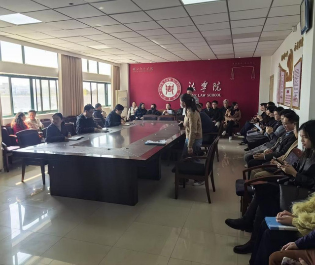 钟彦姝书记结合《本科专业监测评估体系》及《法律硕士专业学位授权点复评指标体系(2022)》的文件内容,简要列明就业质量相关指标,并强调其作为学院人才培养成效的关键衡量依据,全体教师有义务共担就业责任,协同育人。基于学校毕业生就业考核实施办法及2025届毕业生数据,她系统研判当前就业形势,从外部因素和学生自身因素剖析了法科生就业面临的现实困境与结构化矛盾,并提出构建全员协同的就业促进机制。