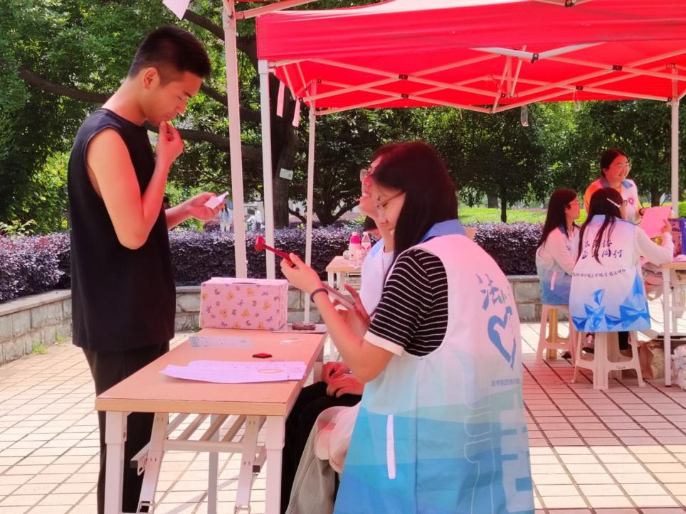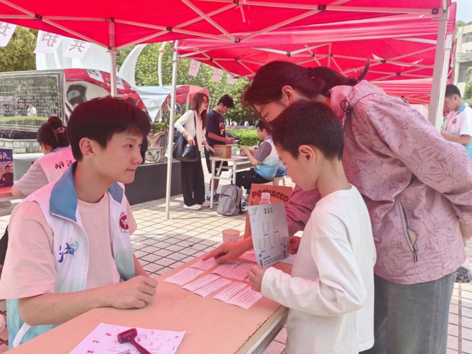 活动现场共设置了六个摊位,在志愿者的带领下,同学们热情高涨地参与到活动中,体验了“忒弥斯的天秤”“法律盲盒抽抽看”“法律一杯茶” 等多个趣味互动游戏。完成所有游戏后,由志愿者为同学们盖上特色印章,集齐相关数量的印章便可至兑奖处参与抽奖并发放环境保护法宣传单。