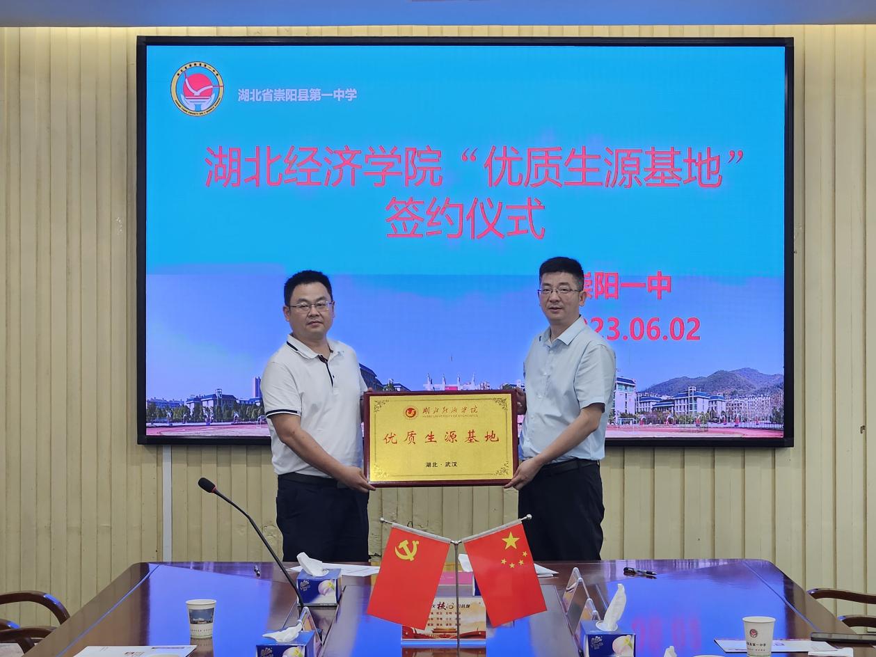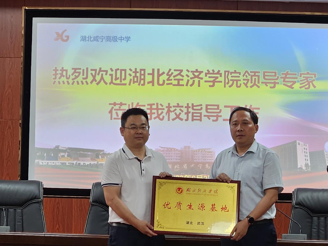 本网讯 6月2日,开云kaiyun官方网站党委书记杨专一行赴咸宁市高级中学、崇阳县第一中学开展招生宣传暨“优质生源基地”签约授牌活动。咸宁高级中学校长朱大浩、副校长陈蕾,崇阳县第一中学副校长王世俊、姜国新,以及两校高中年级组长、高三年级班主任分别出席招生宣传暨“优质生源基地”签约授牌仪式。开云kaiyun官方网站党委书记杨专、党委副书记钟彦姝、基础法学系主任黄新华、经济法学系教师房海军、辅导员唐亚辉参加活动。