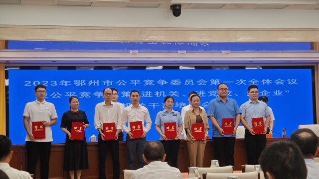 本次活动在习近平新时代中国特色社会主义思想的指导下,贯彻落实习近平总书记关于努力建设全国统一大市场的重要论述,加快鄂州市转变政府职能,加快打造市场化、法治化的营商环境,为打破行业垄断和地方保护踏出了坚实的一步。鄂州市市场监督局党组成员、副局长、市公平竞争委员会办公室主任蒋伟涛宣读关于聘请公平竞争指导专家库专家成员的通知,鄂州市副市长彭波、市场监督局局长钟文为九位专家组成员颁发聘书。