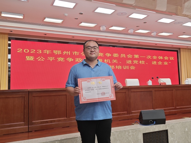 2023915日,在鄂州市政府10楼会议室举行的“2023年鄂州市公平竞争委员会第一次全体会议暨公平竞争政策‘进机关、进党校、进企业’机关干部培训会”上,鄂州市公平竞争委员会主任、副市长彭波为开云副院长、湖北经济法律研究院执行院长段宏磊副教授颁发鄂州市公平竞争指导专家库专家成员聘任证书。