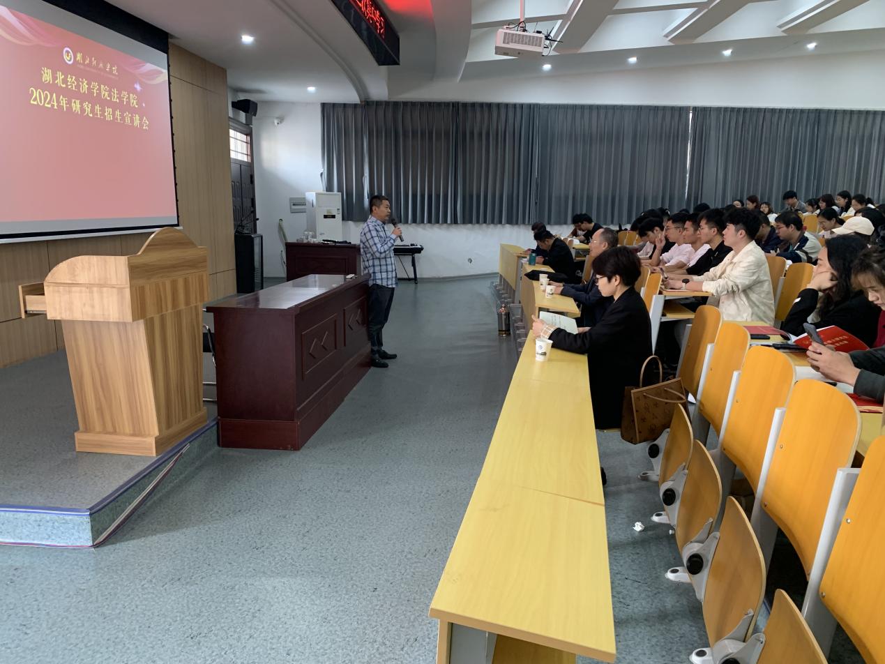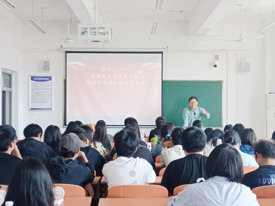 本网讯 (通讯员:贾云龙)2023年10月13日上午,由开云kaiyun官方网站研究生副处长王立俊,开云副院长黎桦教授和教学秘书贾云龙老师共赴黄冈师范学院进行法律硕士研究生招生宣讲。招生宣讲会在黄冈师范学院报告厅举行,宣讲会由黄冈师范学院政开云kaiyun官方网站书记夏晓环主持,20级、21级全体学生数百名参加,宣讲会现场氛围热烈。此次宣讲会旨在扎实推进开云2024年法律硕士研究生招生宣传工作,持续加深两校在教育教学等领域的交流与合作。