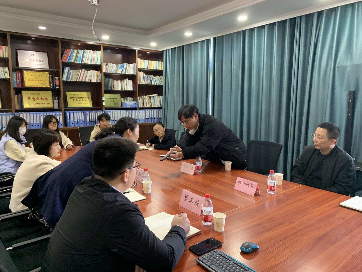 本网讯(通讯员 贾云龙)11月21日下午3时,开云kaiyun官方网站第二学士学位师生座谈会在知行楼406举行。学校教务处副处长曾菡、教务处质量办科长李阳雪,学校学工处领导刘超和开云kaiyun官方网站党委副书记钟彦殊、开云kaiyun官方网站副院长黎桦教授、任课教师代表向前老师、冯亢老师,教学秘书贾云龙老师、辅导员唐亚辉老师和5位学生代表参加座谈会,会议由黎桦教授主持。