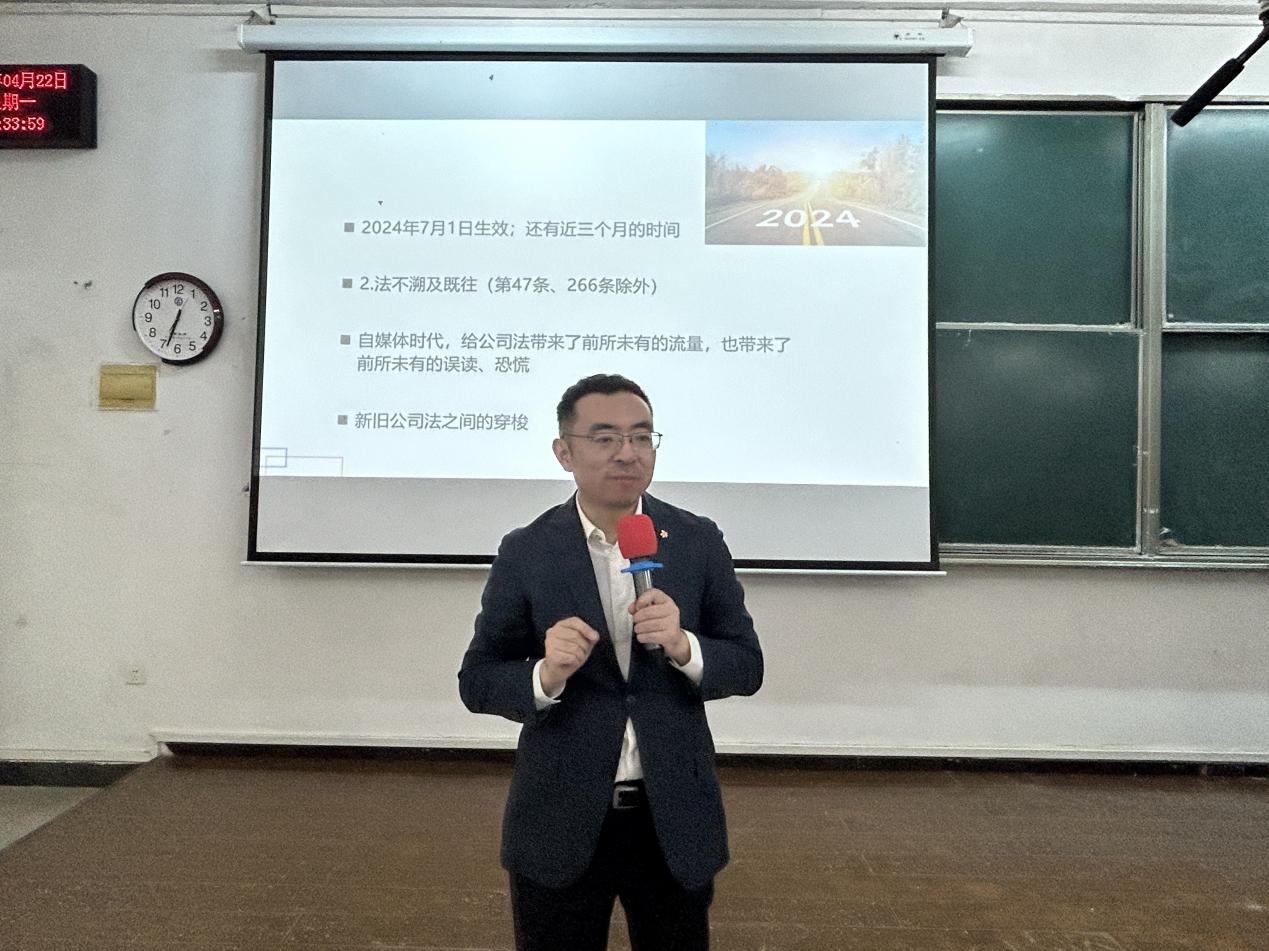 讲座聚焦新公司法解读和法硕法考备考计划。首先,刘老师详细解读了新公司法的相关条款,并结合实际案例进行了生动的讲解。然后,刘老师针对法硕法考备考计划进行了详细指导,从“高、低要求”两方面,综合实际情况回答同学们对法硕法考的疑惑。最后,结合同学们提出的问题,提出了一系列实用的备考建议,为学子们提供了全方位的指导。